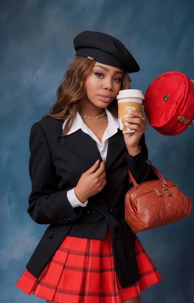 (This look is giving Queen B. Like is she head cheerleader? She definitely seems like she’s popular or maybe that’s just main character energy?!)